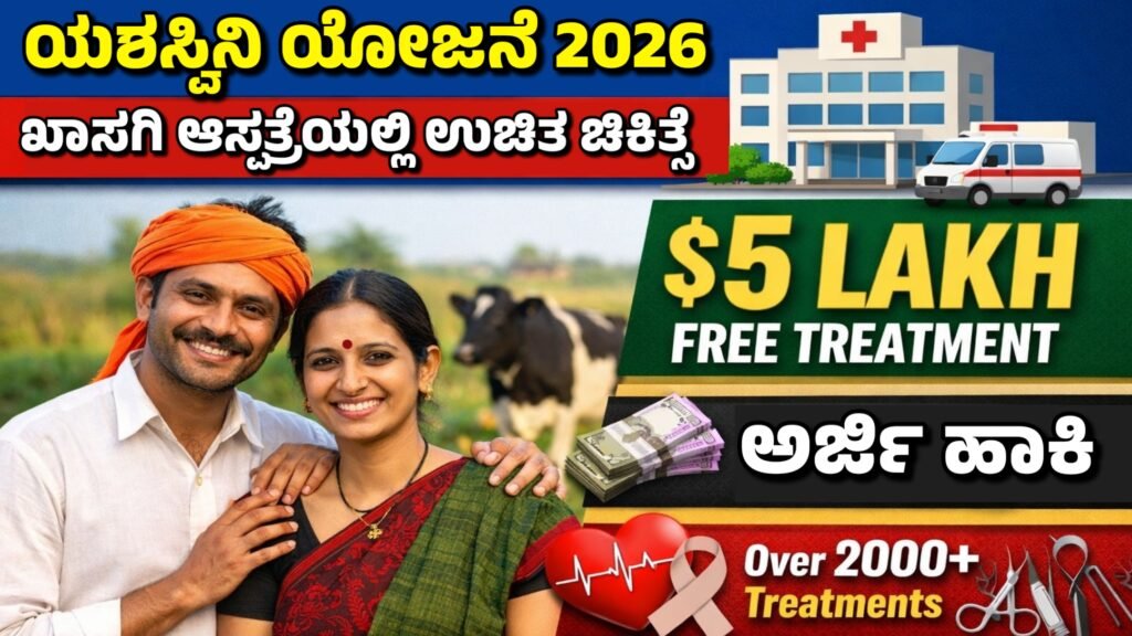 SchemesYashasvini ಯಶಸ್ವಿನಿ ಯೋಜನೆಗೆ ಅರ್ಜಿ ಹಾಕಿ 5 ಲಕ್ಷದವರೆಗೆ ಉಚಿತ ಚಿಕಿತ್ಸೆ ಸಿಗಲಿದೆ.! Harshitha / January 21, 2026