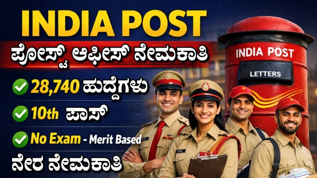 Govt JobsPost Office ಪೋಸ್ಟ್ ಆಫೀಸ್ ನಲ್ಲಿ ಖಾಲಿ ಇರುವ 28,740 ಹುದ್ದೆಗಳಿಗೆ ಅರ್ಜಿ ಆಹ್ವಾನ.! Harshitha / January 22, 2026